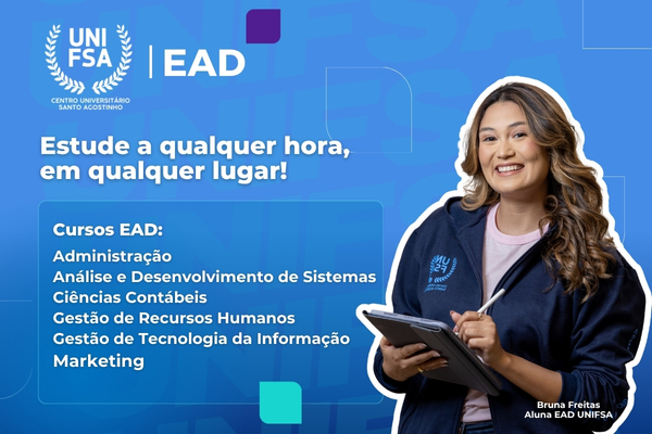 Com os cursos EAD do UNIFSA você tem a oportunidade de estudar nos horários e dias que melhor se adaptam a sua rotina. Assim você pode conciliar a faculdade com trabalho, família etc.